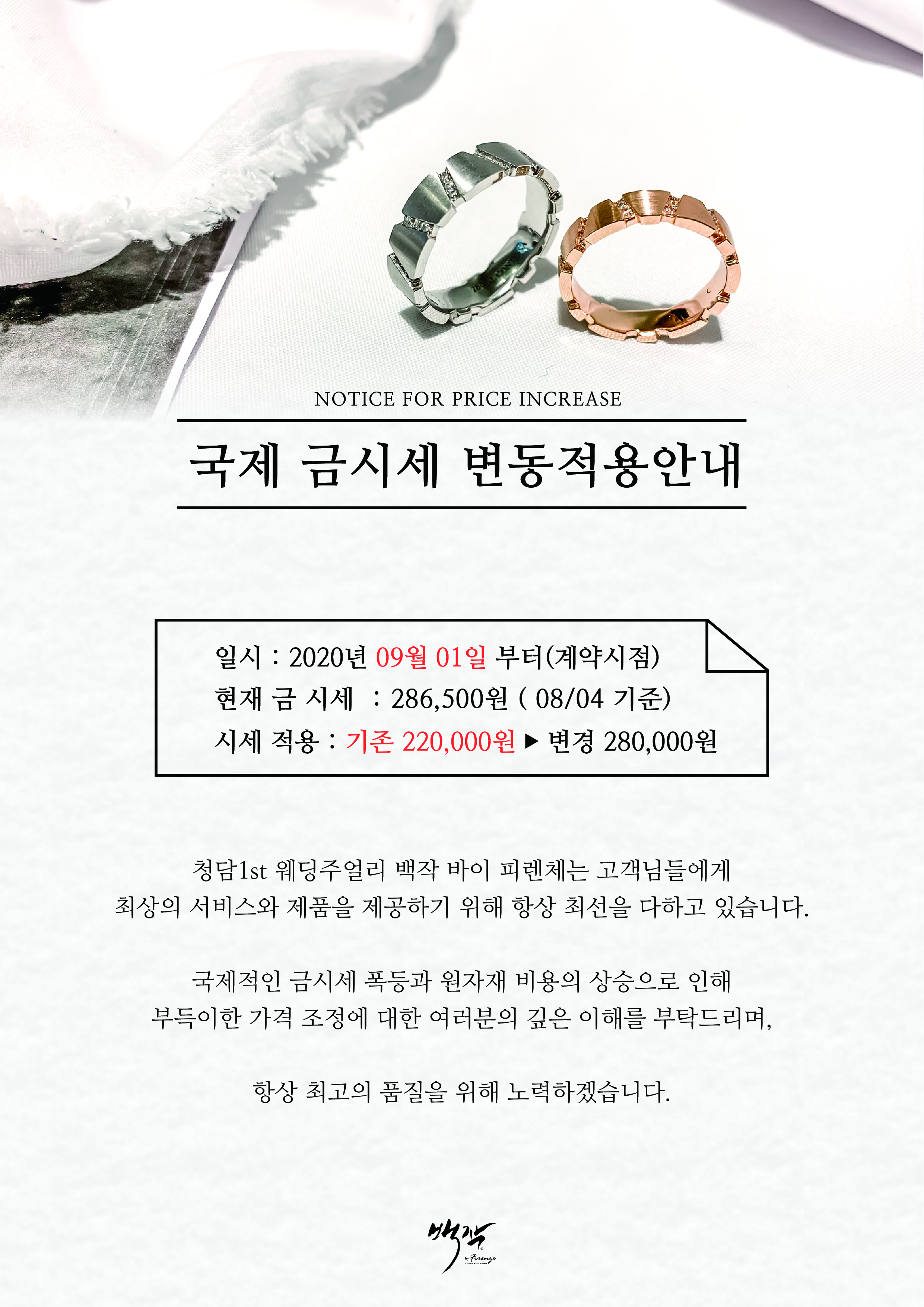 백작바이피렌체 전국지점에서 9월 1일부터 가격이 인상이 되오니
