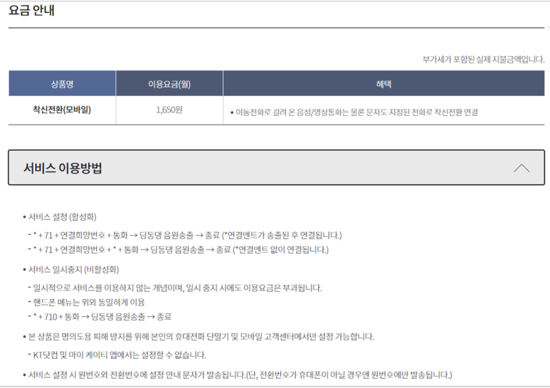 먼저 설정을 위해서는 통신사의 부가서비스 신청이 되어야 합니다.