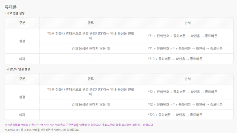 핸드폰 착신전환 SK.KT.LG 설정과 해제 방법