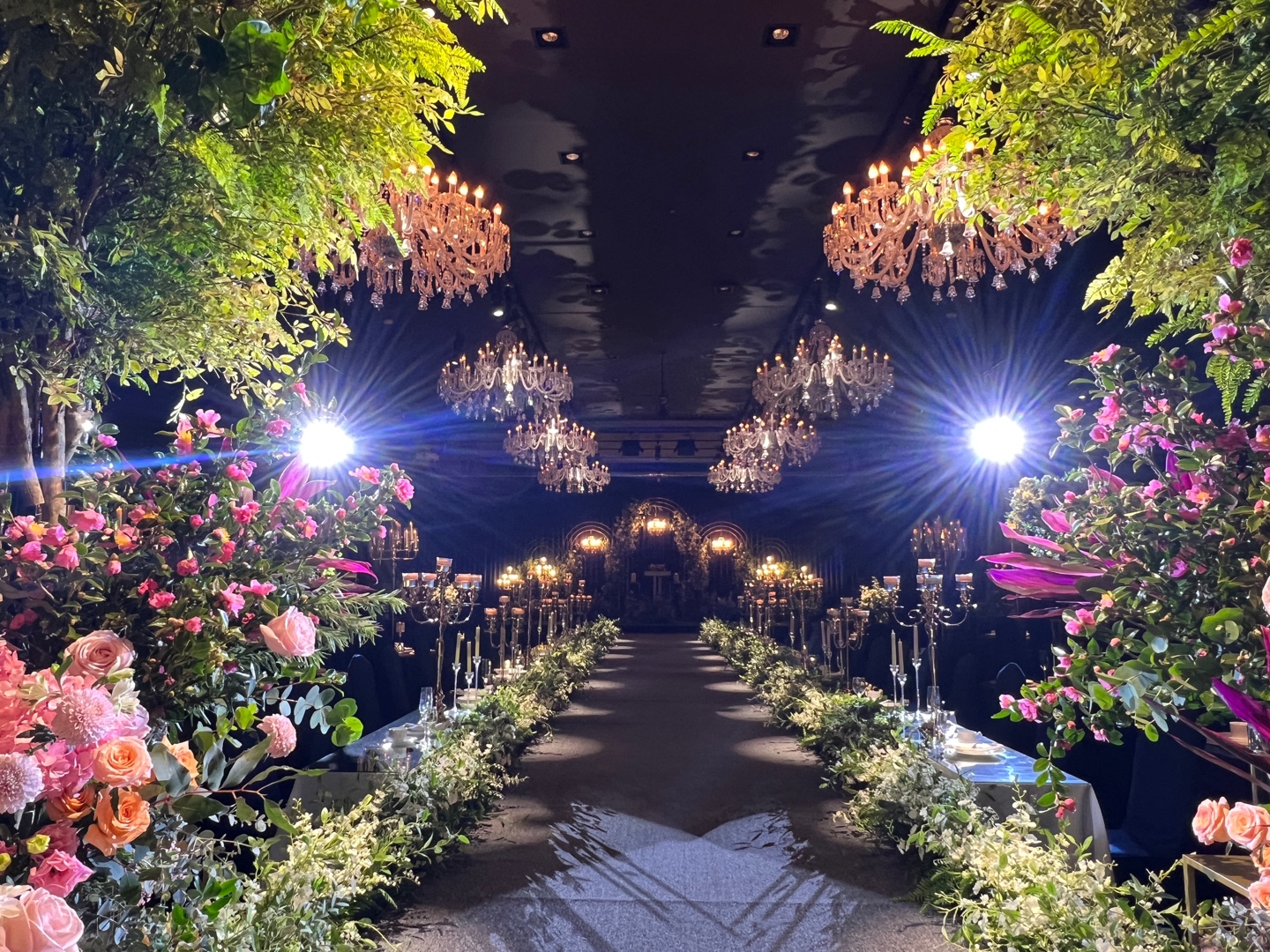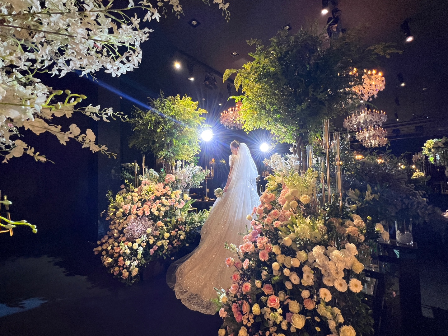원래는 어두워서 무거워 보이는 홀이지만 식이 시작되면 두 부부만을 향해 빛을 쏴주는데 정말 눈부셨습니다.
