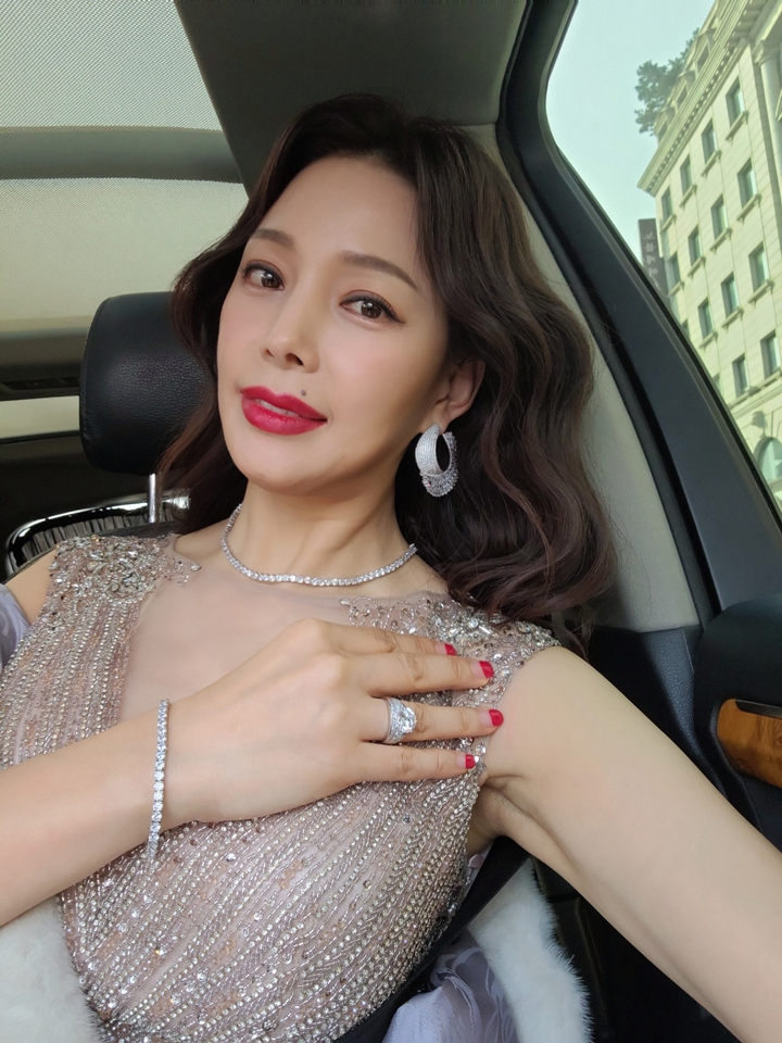 또 예물 브랜드 백작바이피렌체(Baekjak by Firenze)의 5캐럿 다이아몬드 반지와 수입 드레스 브랜드 니콜스포사를 입고, 슈에무라의 161번 레드립스틱을 발랐다고 밝혔다.